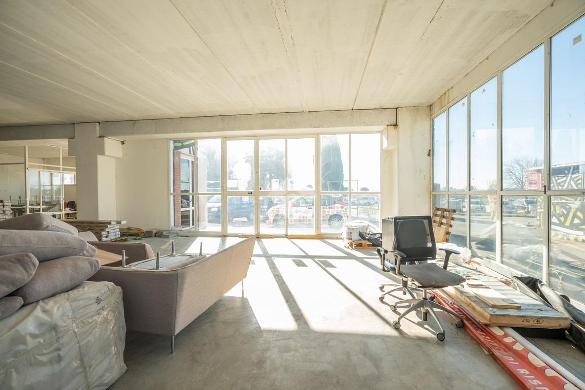 La luminosità naturale garantita dalle ampie vetrate rappresenta un valore aggiunto sia per ambienti produttivi sia per eventuali spazi espositivi.