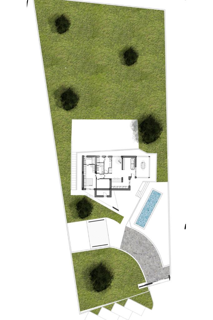 All’esterno, i circa 2.200 mq di terreno circondano la villa creando un’atmosfera di grande respiro. La piscina, perfettamente integrata nel giardino e nel disegno architettonico, si affaccia sul panorama rendendo ogni momento all’aperto un’esperienza unica. L’illuminazione esterna, studiata per valorizzare volumi e percorsi, accompagna la casa in un effetto scenografico serale di grande eleganza.