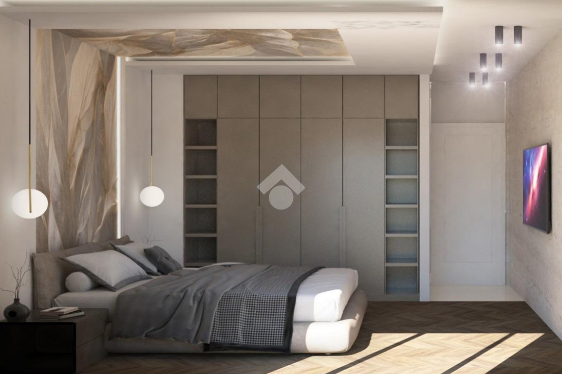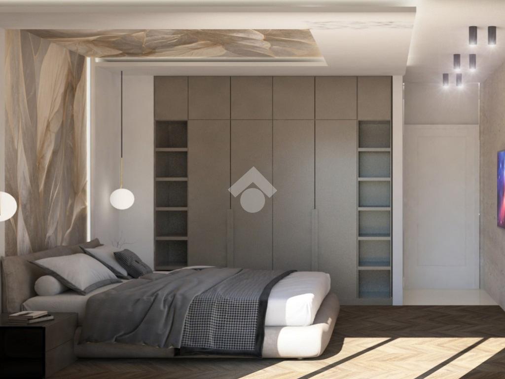 Una scenografica scala a chiocciola di design conduce al piano superiore mansardato, dove si sviluppa una terza camera da letto, anch’essa dotata di cabina armadio e bagno privato, perfetta come suite ospiti o spazio indipendente per chi desidera la massima riservatezza.