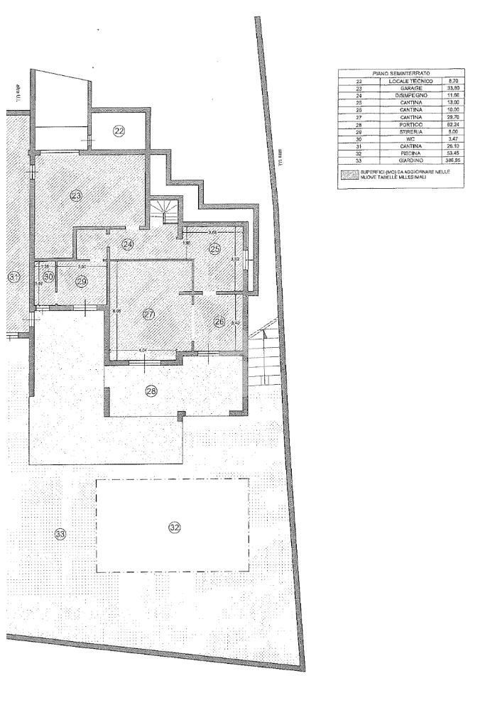 Il piano seminterrato è caratterizzato da un ampio garage e da spazi polifunzionali, che possono essere sfruttati secondo le proprie esigenze, sia come zona relax che come area dedicata ad altri utilizzi. Il piano seminterrato ha anche un accesso diretto alla piscina e al giardino, creando un angolo di paradiso privato dove trascorrere momenti di svago e benessere.
